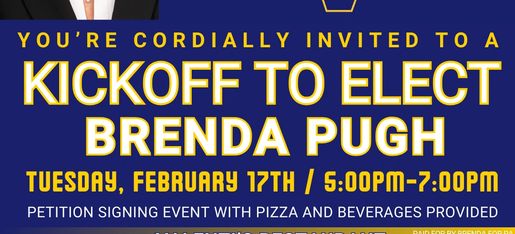 We invite you to a campaign kickoff for Brenda Pugh at Valenti's on Tuesday, February 17th.